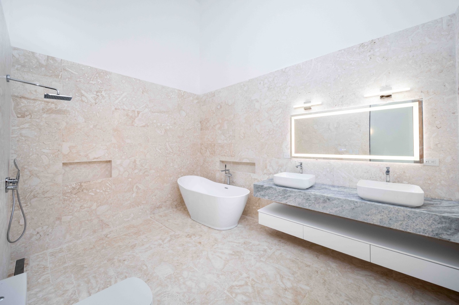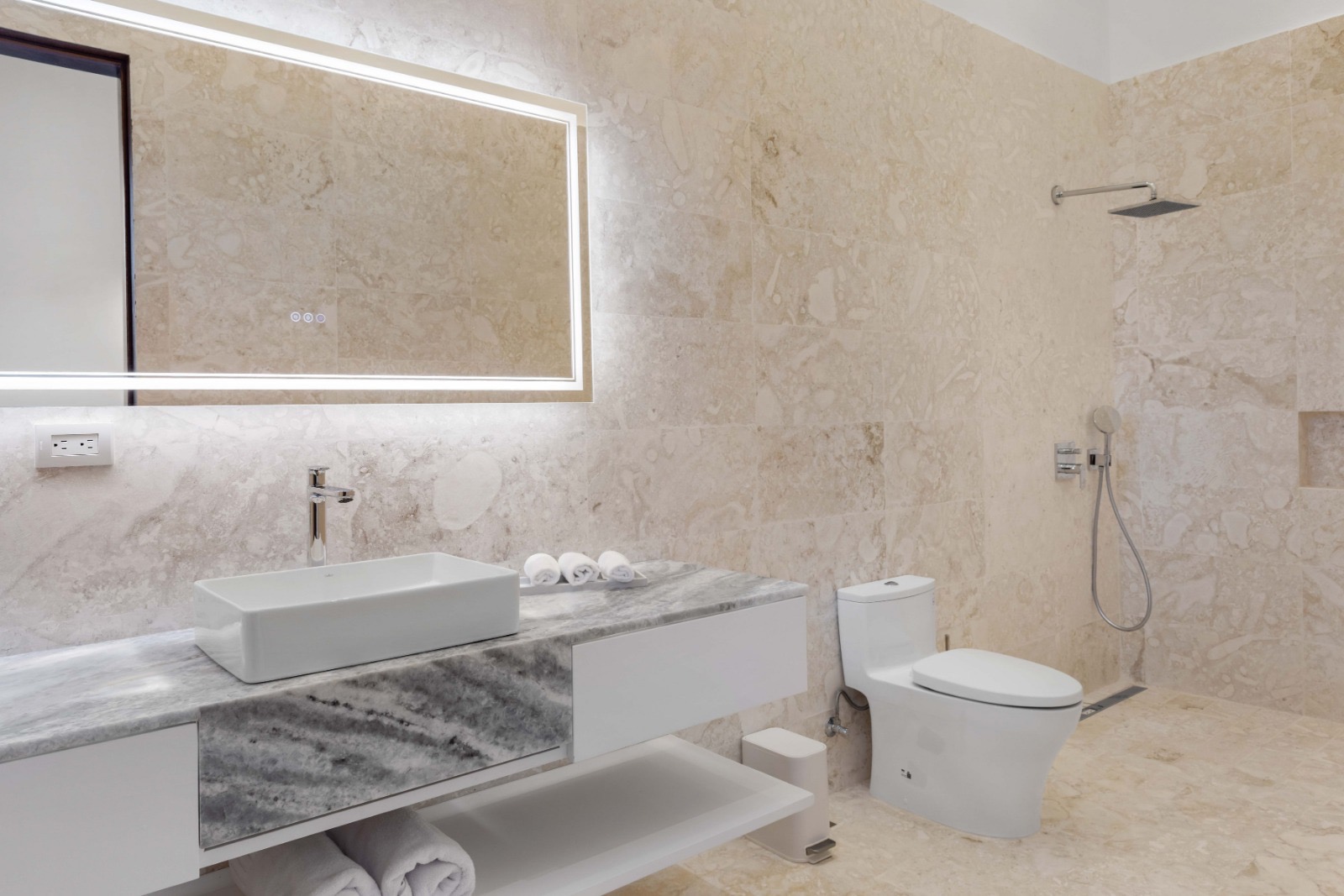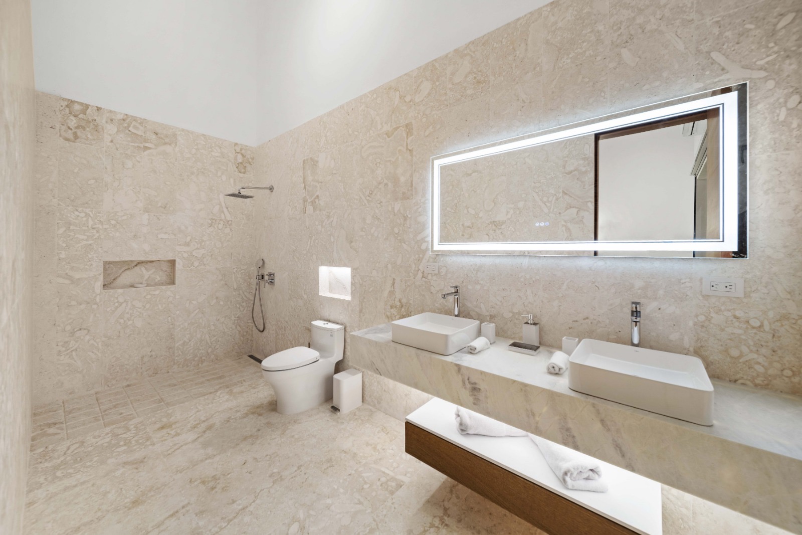 The villa’s modern design highlights clean architectural lines, refined materials, and luxurious finishes throughout the property. Large sliding doors open to the outdoor terrace, blending indoor and outdoor living while allowing the Caribbean breeze to flow naturally through the home.