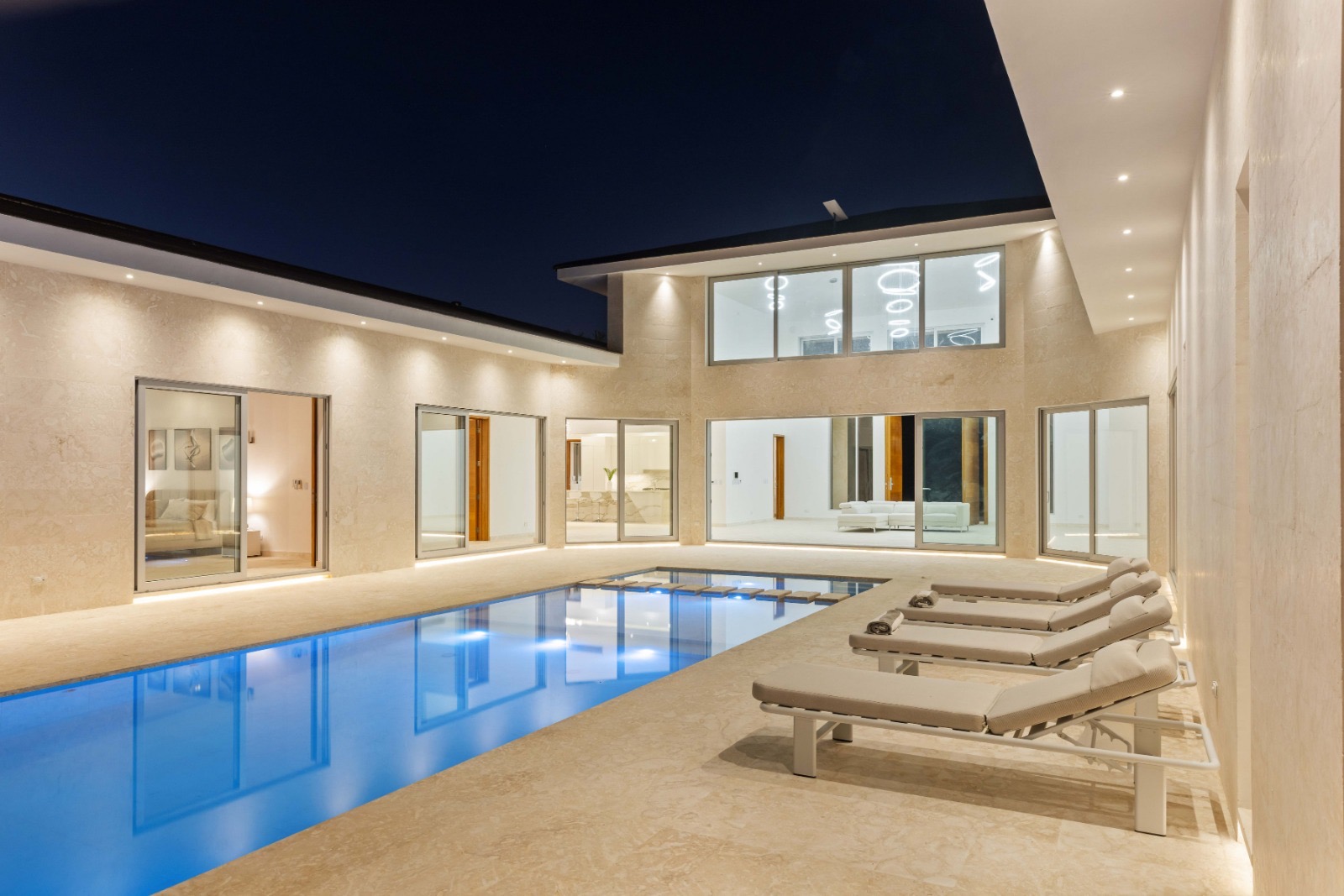 With its sleek architecture, bright open living spaces, and thoughtfully designed interiors, Villa Majesty combines modern sophistication with relaxed tropical living. The villa features expansive common areas ideal for entertaining, along with stylish lounge spaces where guests can unwind after a day at the beach or golf course.